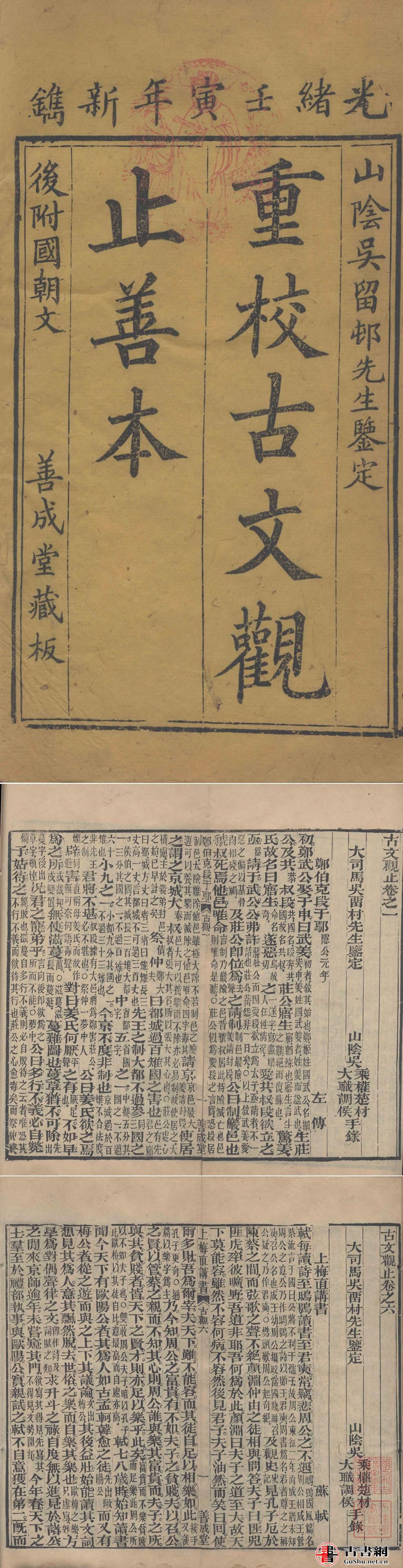 古籍.古文观止. 六卷. 清. 吴楚材等辑. 清光绪二十八年善成堂刊本