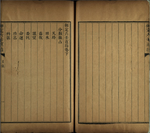 《御定六壬直指》上下卷,附析义,清.李峰注解,清康熙时期精钞本,被收录于术藏第49卷。