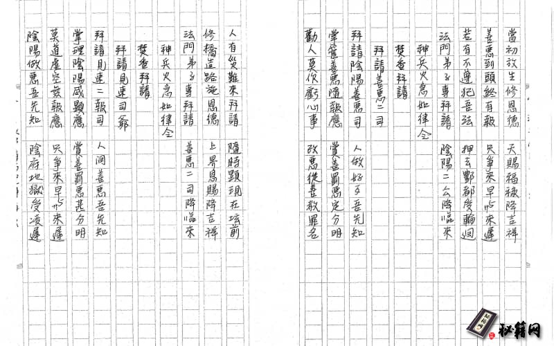 书名:《閭山奉請聖真科》刻印方式:手抄