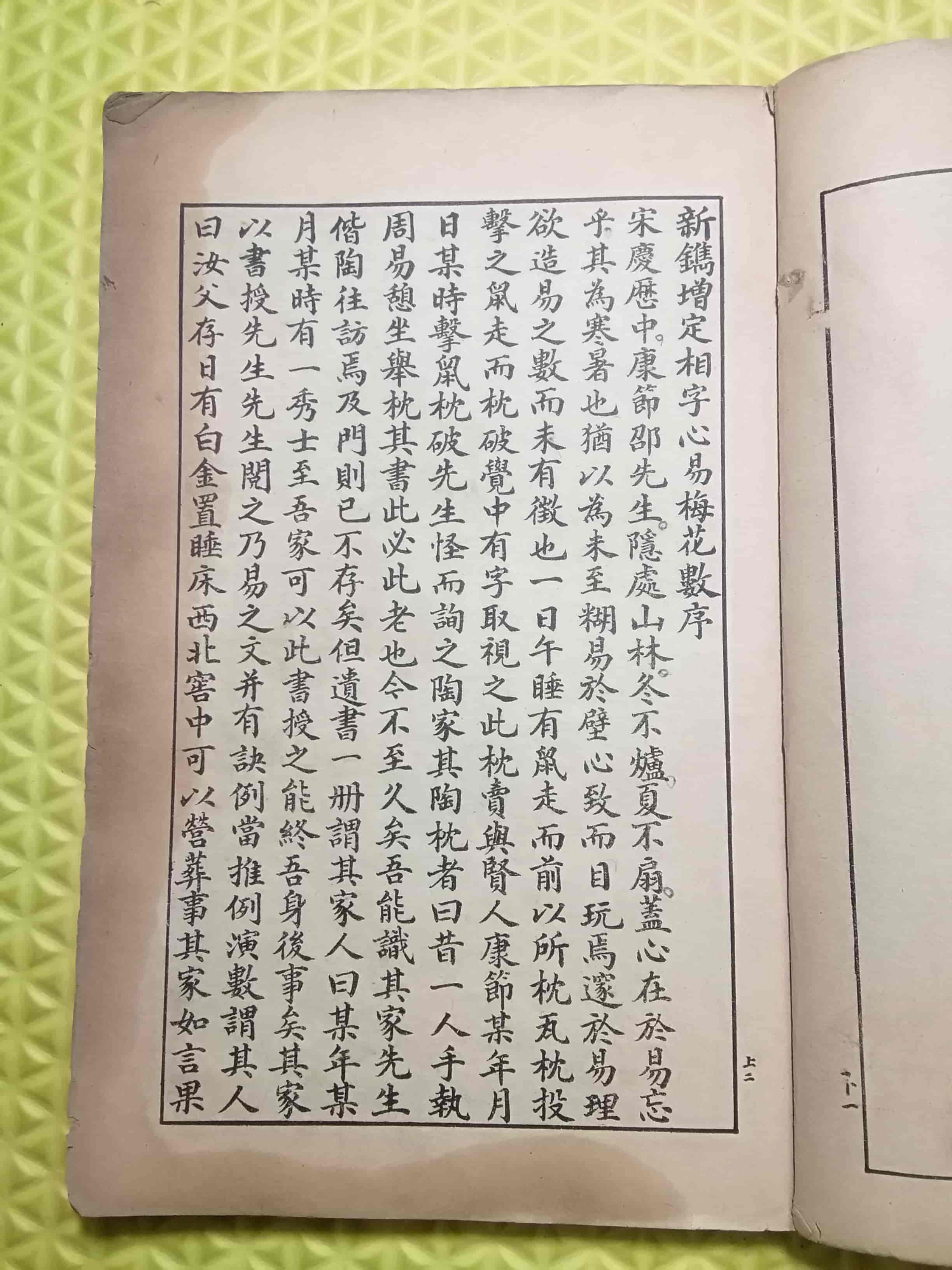 《测字秘诀梅花易数》5卷,民国石印本,又名《新镌增定相字心易梅花数》、《新刻增定邵康节先生梅花观梅拆字数全集》,邵康节先生著,全本共58个双面,合计116页。