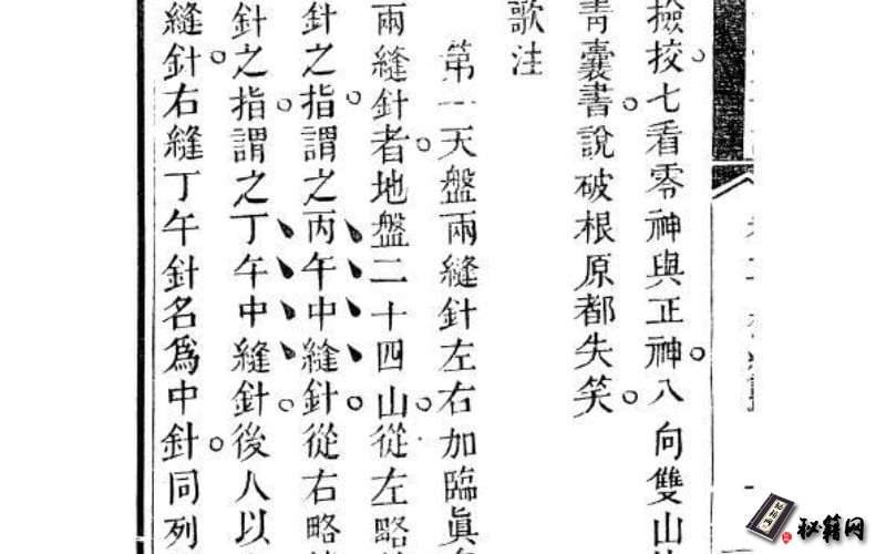 第一天盘两缝针,左右加临主真奥妙。第二水口分正隅。四隅更合元关窍。三看来方生旺星