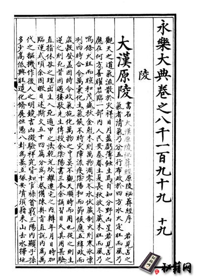 此書版本今僅存《永樂大典》卷第八千一百九十九所錄的一種版本,民間似皆無其 他版本存世。所據之《永樂大典》底本原藏中國國家圖書館, 似暫未公開高清掃描版,故網絡上所傳之電子版《大漢原陵秘葬經》頗模糊不能讀。今 據網絡上所傳此冊《永樂大典》之最清晰掃描版本,去掉底色,並對插圖加以簡單描修後刊行。前加目錄,其後再附以徐苹芳先生《唐宋墓葬中的『明器神煞』與『墓儀』制 度——讀〈大漢原陵秘葬經〉札記》一文,希望對研讀此書的學友有所幫助。
