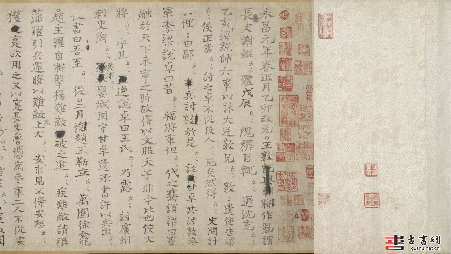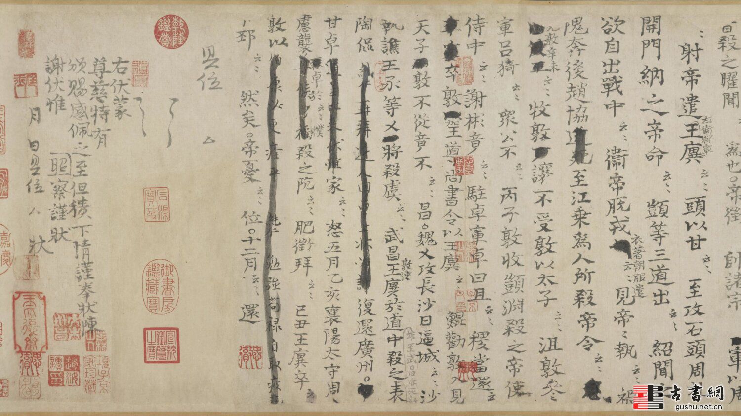 《资治通鉴残稿》宋代曾为赵汝謮的插架之物;元代经赵孟頫、戴良收藏;元末明初由危素收藏,入明后由袁忠彻、王济、项元汴递藏;清初为梁清标所有。《资治通鉴残稿》入藏清宫后,倍受历代皇帝的青睐,乾隆皇帝不仅御笔题签,而且加盖了自己的宝玺。