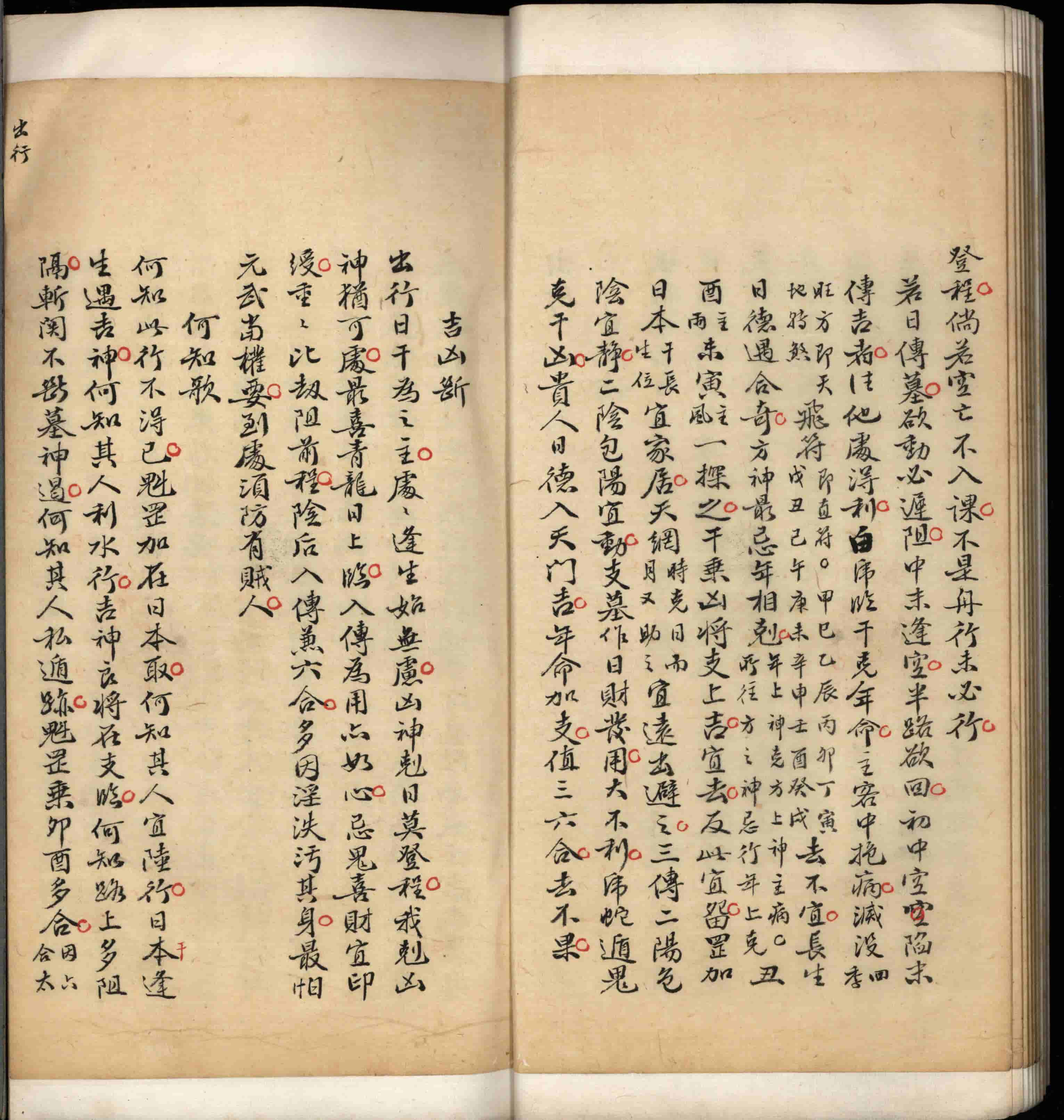 出行,日辰论,吉凶断,遥望人来推测善恶,遥闻鼓噪占问吉凶,避难吉方,迷失道路,投宿,忧众问吉凶,求饮食,遇兵器,六甲出诀,途次风雨,占人被差行否,出行总论,久暂远近论,行人去向,信之虚实,何知章。