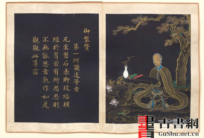 书名:十六罗汉图赞.册页.清乾隆时期内府.泥金绘本