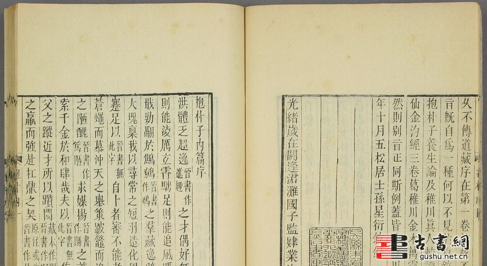《抱朴子》是东晋葛洪撰总结了战国以来神仙家的理论,从此确立了道教神仙理论体系;又继承魏伯阳炼丹理论,集魏晋炼丹术之大成;它也是研究我国晋代以前道教史及思想史的宝贵材料。东晋道家理论著作。此本为清嘉庆时期刻,光绪年吴县朱氏槐庐家塾刊本。