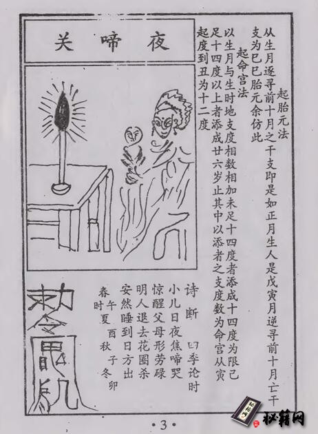 夜啼关:凡子午丑未时生人犯此关,主夜间多啾唧不宁。