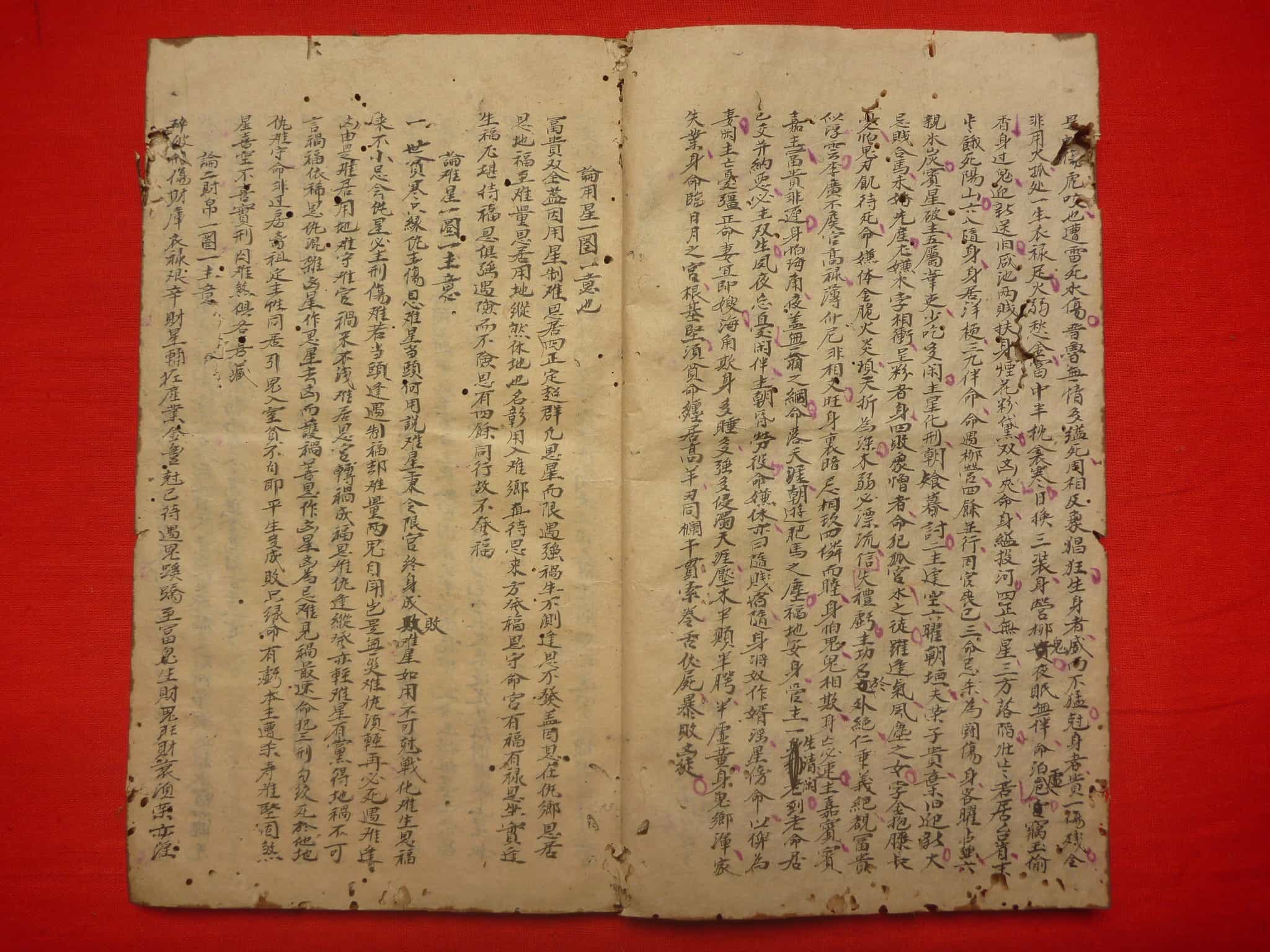 《张果星宗命理》手抄本,部分页面有破损虫蛀,全本共41个双面。