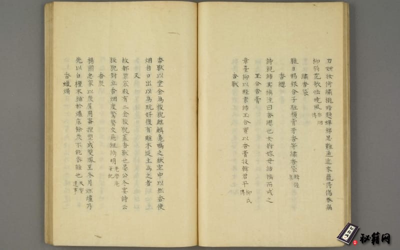 《香乘》全书共二十八卷,李维桢为序,崇祯辛巳(1641)刊成。该书被收录于清代《四库全书》子部谱录、《笔记小说大观》等书籍。