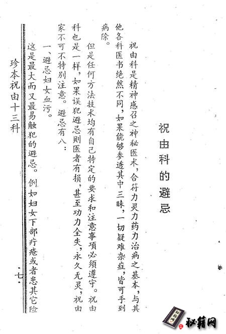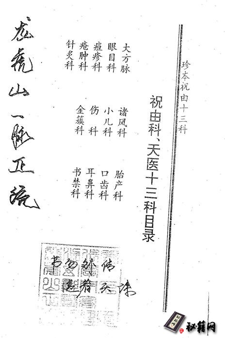 眼科、伤科、耳鼻科、产科、金簇科、小儿科、针灸科、等十三门,简称祝由十三科,