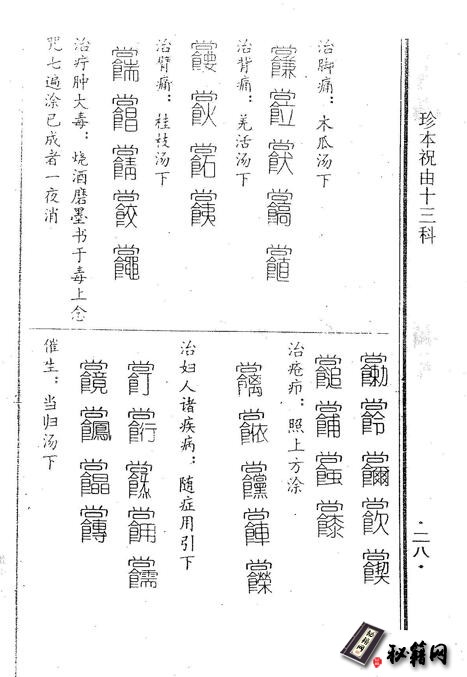 秘字以雨字为群,鬼字为臣,其它各字为佐使,
