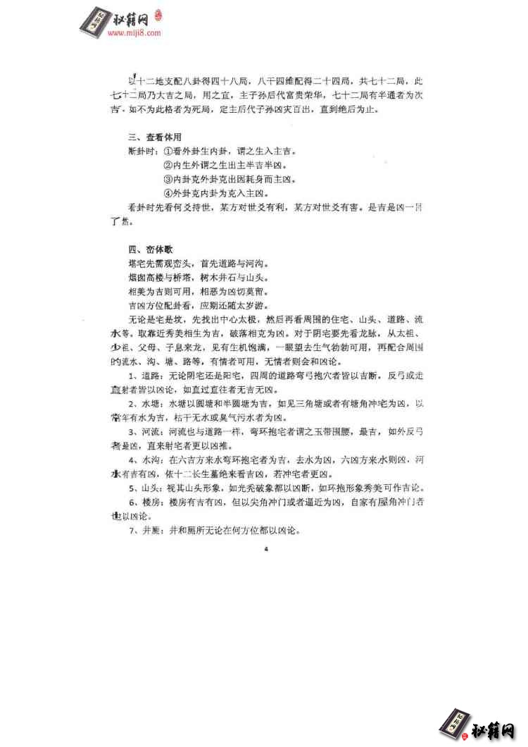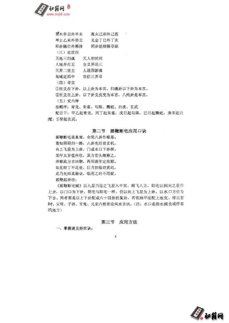 摇鞭断宅秘传孤本,出于清朝嘉庆年间江苏吴江风水名师凌祯松之手。凌 祯松先生,江苏吴江县人,清朝嘉庆七年进士,为人聪明好学,自小就对阴阳 八卦五术方面爱好钻研,尤其对于河洛理数八卦九星研究得非常透彻,他少年 得志,科考得中后在钦天监(宫署名。宋元时叫司天监。掌管观察天蒙,推算 节气历法,同时为皇帝设风水,古时将搜长风水以管理风水的要员安排在司天 监里供职,专为圼朝服务)供职,官封“钦天史”专门负责编写天文地理方面 的书籍,井为朝廷皇宫院内布置风水,为朝廷立了不少功劳,后因得罪朝中显 贵,有人用莫须有的罪名向皇上参奏,皇上听信谗言将其削官罢职,并发配塞 外服刑,刑满后返乡,隐居故里,他壮志未酬,遂另谋途径,背罗盘游走天下t 为人察看风水,施居平生之博学,造福人民,同时广收门徒,讲经说法。百忙 中作此风水著作,留传后人,此法就是其留下的一本秘本s其法定型有理,准 确度很高•而且在调整风水方靣更有的放矢。这门学派掌握六爻水平越髙,论 断的准确度越高。