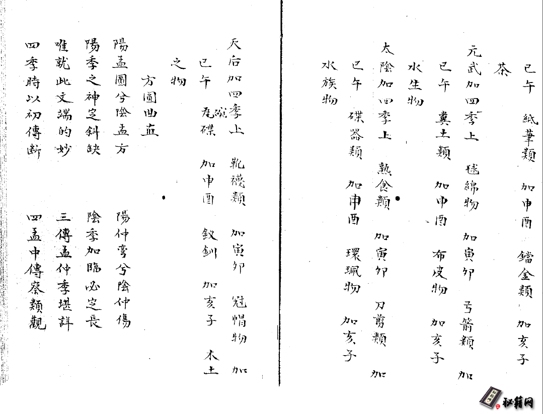 射覆法、十干色、物类法象、王头干言物类法、支言物类时