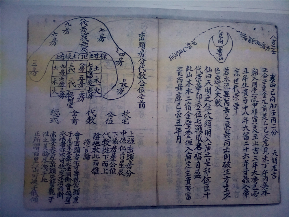 内容包含:二十四山歌诀,分金括,八卦歌,峦头房分代数宫位全图,墓图式等,基本上每页都有绘图。