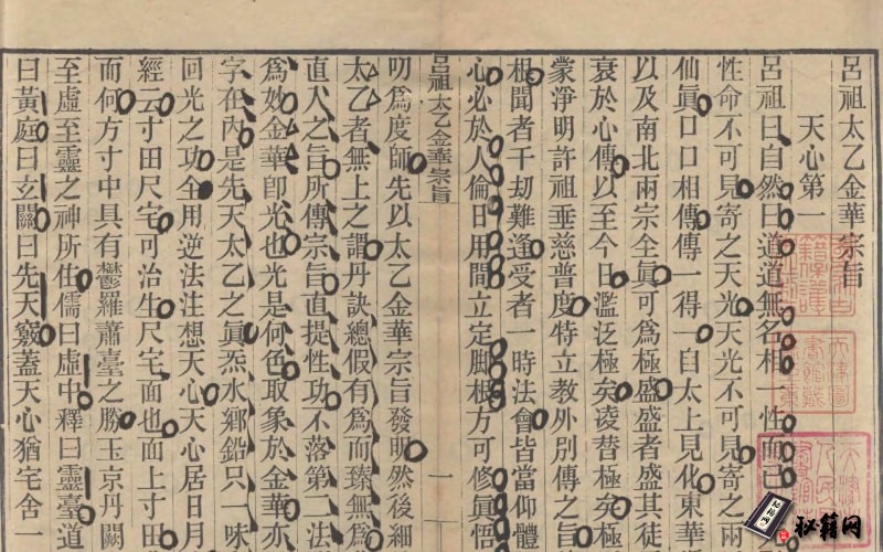 《太乙金华宗旨》是道家修身养性的书,教人清心寡欲,做一个有智慧、有道德的人。为明清扶乩托名吕祖所作与《唱道真言》、《道乡集》、《大成捷要》、《古书隐楼藏书》为明清道家经典著作的代表 。《太乙金华宗旨》较少用及铅汞、龙虎、坎离等名相, 以道教内丹金丹(金华)之修炼为主, 而以儒书、佛书相辅做说明, 文较易懂。荣格的《金花的秘密》出版后,轰动欧洲,成为畅销书之一,前后出版次之多。后又翻译英文,畅销到全世界。