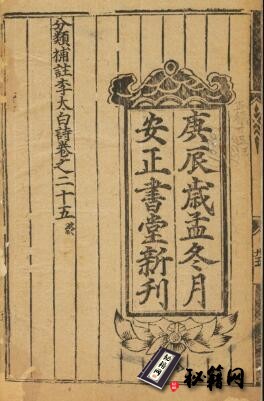 古籍.分类补注李太白诗,明正德、万历刊本、元至大、明嘉靖刊本