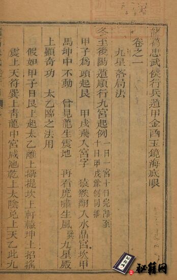 书名:《忠武候诸葛武候奇门遁甲》刻印方式:刻本