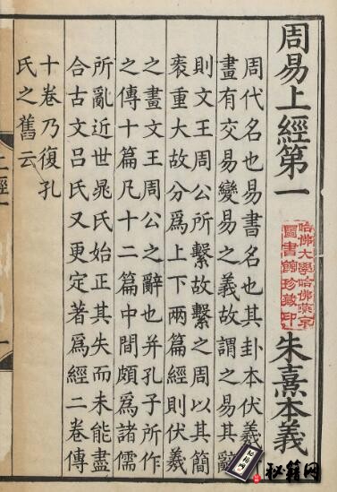 古籍.周易本义.十二卷.易图.五赞.筮仪.各一卷.宋朱熹撰.仿南宋咸淳乙丑九江吴革刊本
