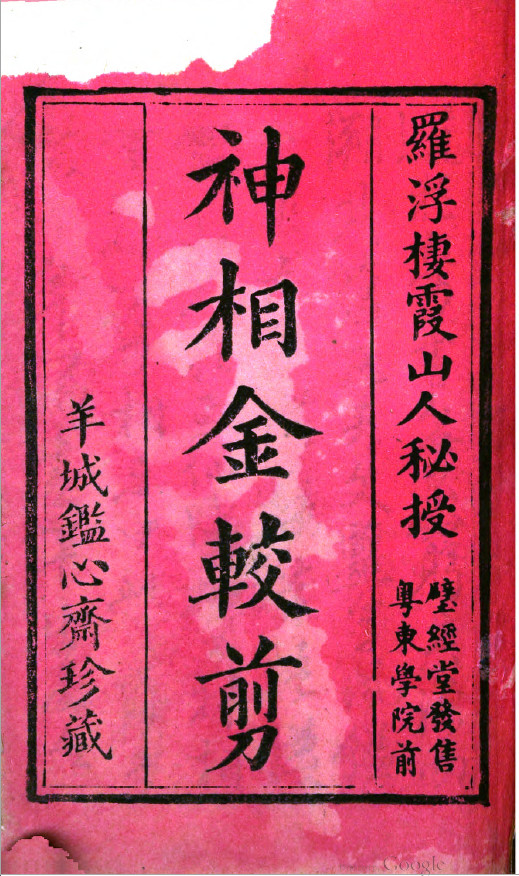 《神相金较剪》,被收录于子部珍本备要第213种,作者罗浮栖霞山人,此为清刻本,璧经堂藏版。
