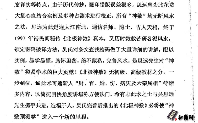 北极神数是五大神数(铁板、邵子、皇极、南极、北极)之一,各大神数以北极为主、为中。也是最神奇精准,它是以北斗七星(破军、武曲、廉贞、文曲、禄存、巨门、贪狼)为主,奇门九星,八八六十四卦二十八星宿为辅,北极神数奇在铁板定钉富、贵、贫、贱、寿夭、吉凶祸福、风水之论述上堪称一绝,由其在六亲属相,考时定刻上是区分相同八字命运不同唯一一种神数。北极神数以简单神奇6144条文,快而准著称,算人测事只需三分钟。北斗七星以斗纲(破军星)7数为北极神数之绝,乃宇宙最奇特之数字,因凡事到第七就为完尽休止,象圣经上所有言语皆有尽七原则及佛教中对死人之亡灵的安排,世有作七的风俗……斗纲指寅木是正月,老子曰“月月长加戌,日日见破军,破军前一位,万古不传人。”