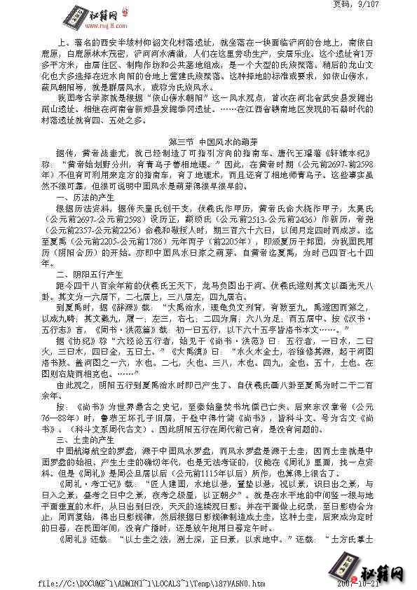 这并不是偶然现象,“客观社会的存在,决定人们的社会意识。”当今客观社会的风水 术,绝大部分都不是赣州杨救贫的风水术,而是江湖风水术。什么神龟点化?什么九天玄 女?什么仙人秘授?翻卦的,乘银河系北斗七星气的,特别是蒋大鸿的三元大玄空,连中 国罗盘都不认识,讲紫白天星,不用人盘。讲64卦,不用天盘,都用乘地球生气的地盘。 实实在在是骗人的迷信“风水”。是客观存在反映人们“视风水为封建迷信的社会风水意 识。”这也就不奇怪了。由于历史和其他的原因,人们对风水的认识也过于简单化了,甚 至丧失了最普通的常识。这样说的最简单的理由是: