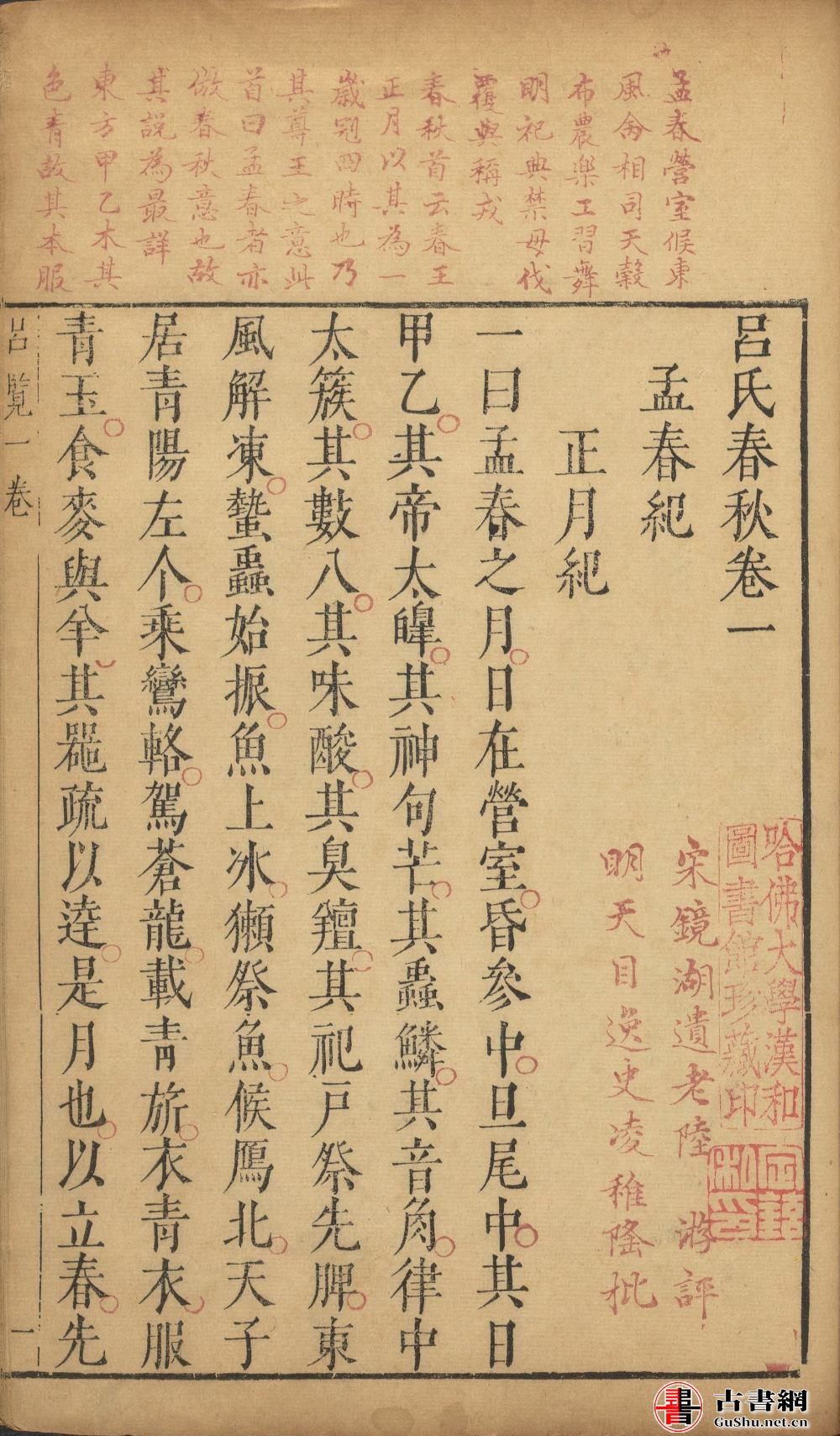 古籍.吕氏春秋. 二十六卷. 战国. 吕不韦. 编. 明. 凌稚隆批. 明万历四十八年吴兴凌氏刊朱墨套印本