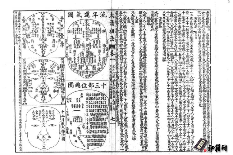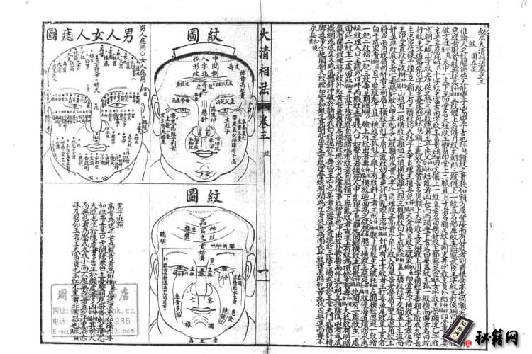 《秘本大清相法》。原四卷續集一卷。綫裝。現據虛白廬藏光緒丙申(一八九六)袖海山房石印本修復清理出版。原藏本書末數頁略殘,是次重刊據虛白廬藏民國二十六年(一九三七)上海大新圖書社鉛印本《大清相法全書》補入。