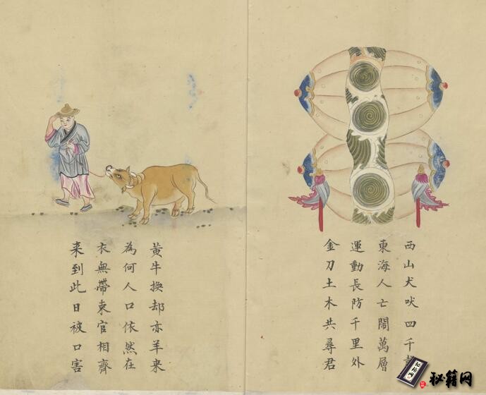 李淳风用周易八卦进行推算,没想到一算起来就上了瘾,一发不可收拾,竟推算到了唐以后中国2000多年的命运,直到袁天罡推他的背,说道:“天机不可再泄,还是回去休息吧”,因此这本预言奇书得名《推背图》。《推背图》共有六十幅图像,每一幅图像下面附有谶语和“颂曰”律诗一首,预言了从唐开始一直到未来世界大同发生在中国历史上的主要事件。