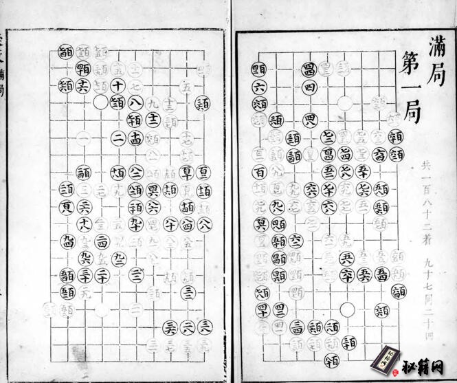 围棋书谱。明代苏之轼编撰。天启年间程明宗刊行。分礼、乐、射、御、书、数六册。“礼”册载文士陈继儒、徐大化所赠诗文,以及为本书所作的序、引、跋多篇,并附有编者注释的《棋经十三篇》。“乐”册载“满局”四十局,皆出自名手对局,由编者修订。“射”册载“全局”二十局,是编者与同时代国手对局的实战记录。“御”册介绍了前代流行的棋式。“书”册记载侵分手段。“数”册选录局部残局、死活棋形一百余例。
