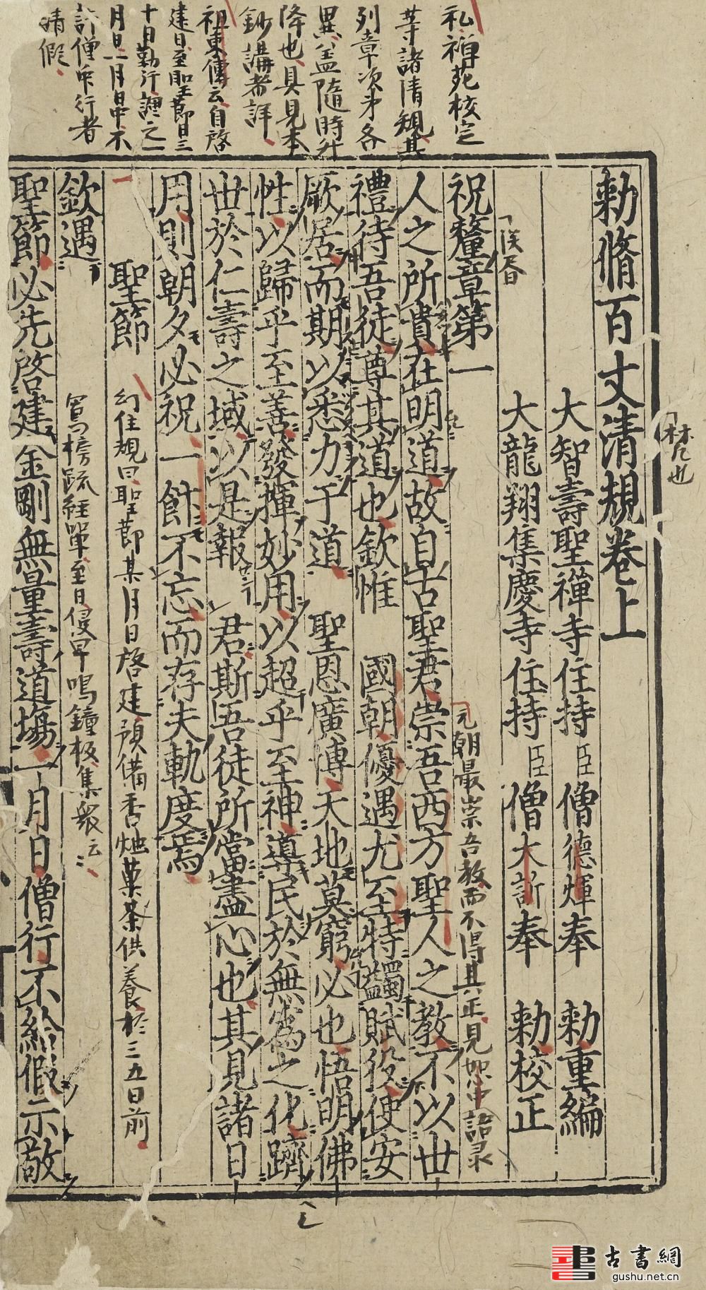 古籍.敕修百丈清规. 上下卷. 唐. 百丈怀海禅师. 撰. 元. 德辉重编