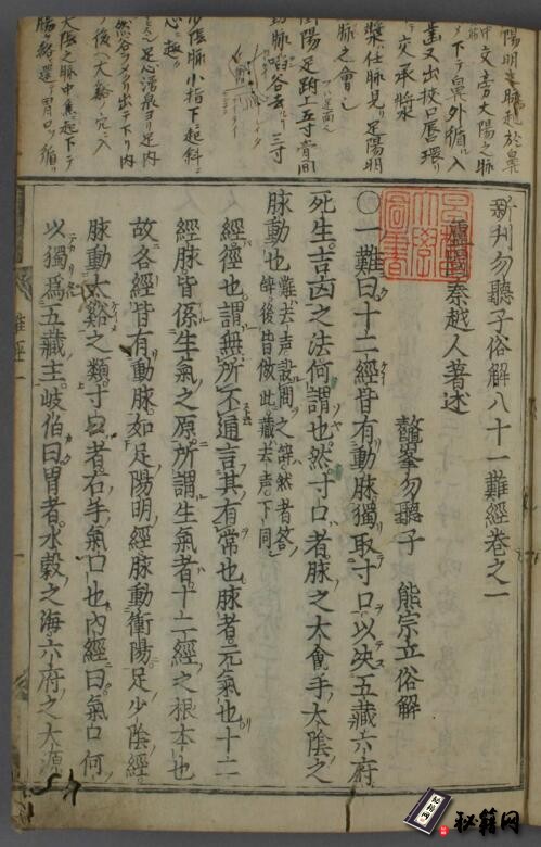 “难”是“问难”之义,或作“疑难”解。“经”乃指《内经》,即问难《内经》。作者把自己认为难点和疑点提出,然后逐一解释阐发,部分问题做出了发挥性阐解。全书共分八十一难,对人体腑脏功能形态、诊法脉象、经脉针法等诸多问题逐一论述。