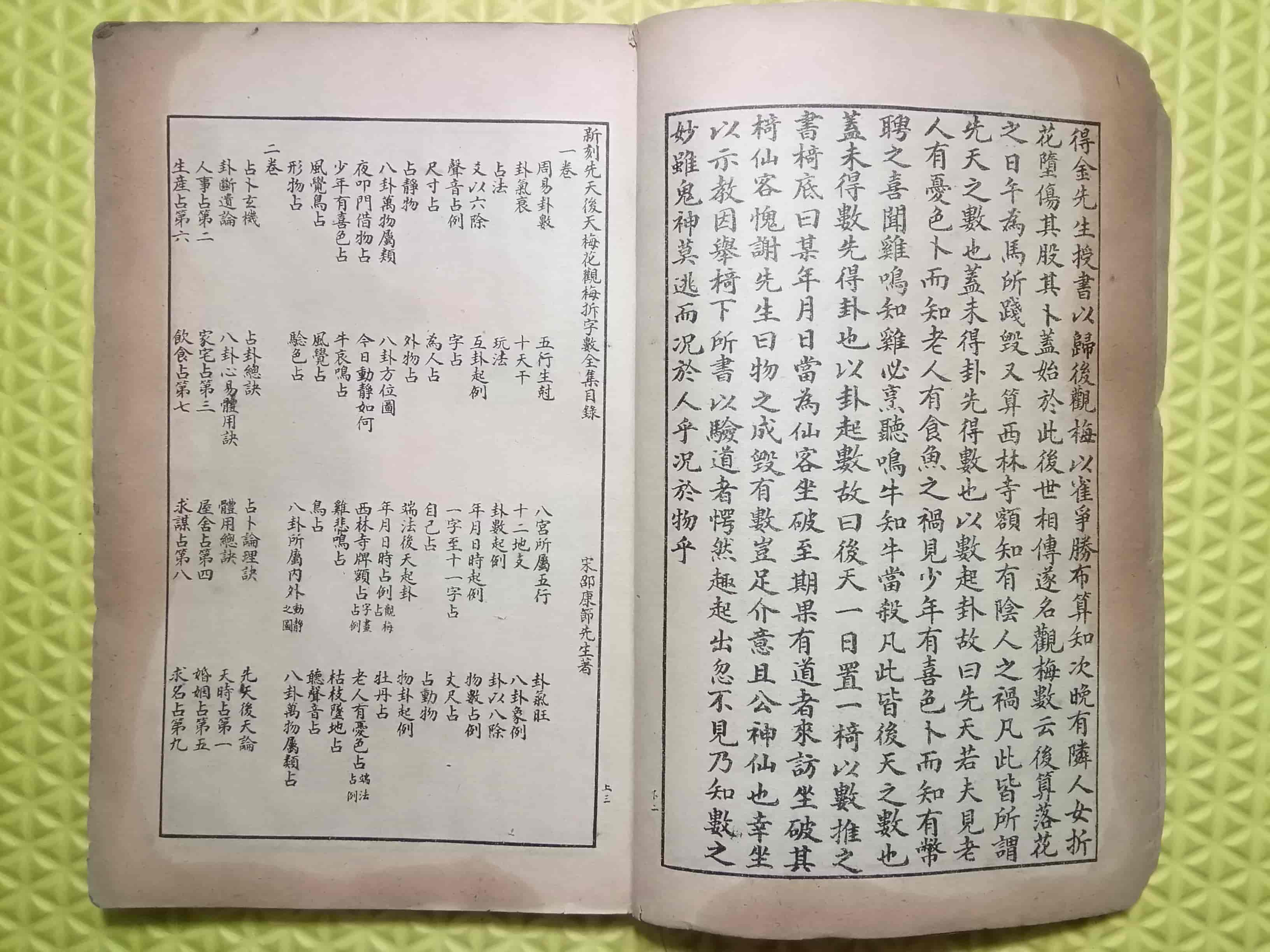 《测字秘诀梅花易数》5卷,民国石印本,又名《新镌增定相字心易梅花数》、《新刻增定邵康节先生梅花观梅拆字数全集》,邵康节先生著,全本共58个双面,合计116页。