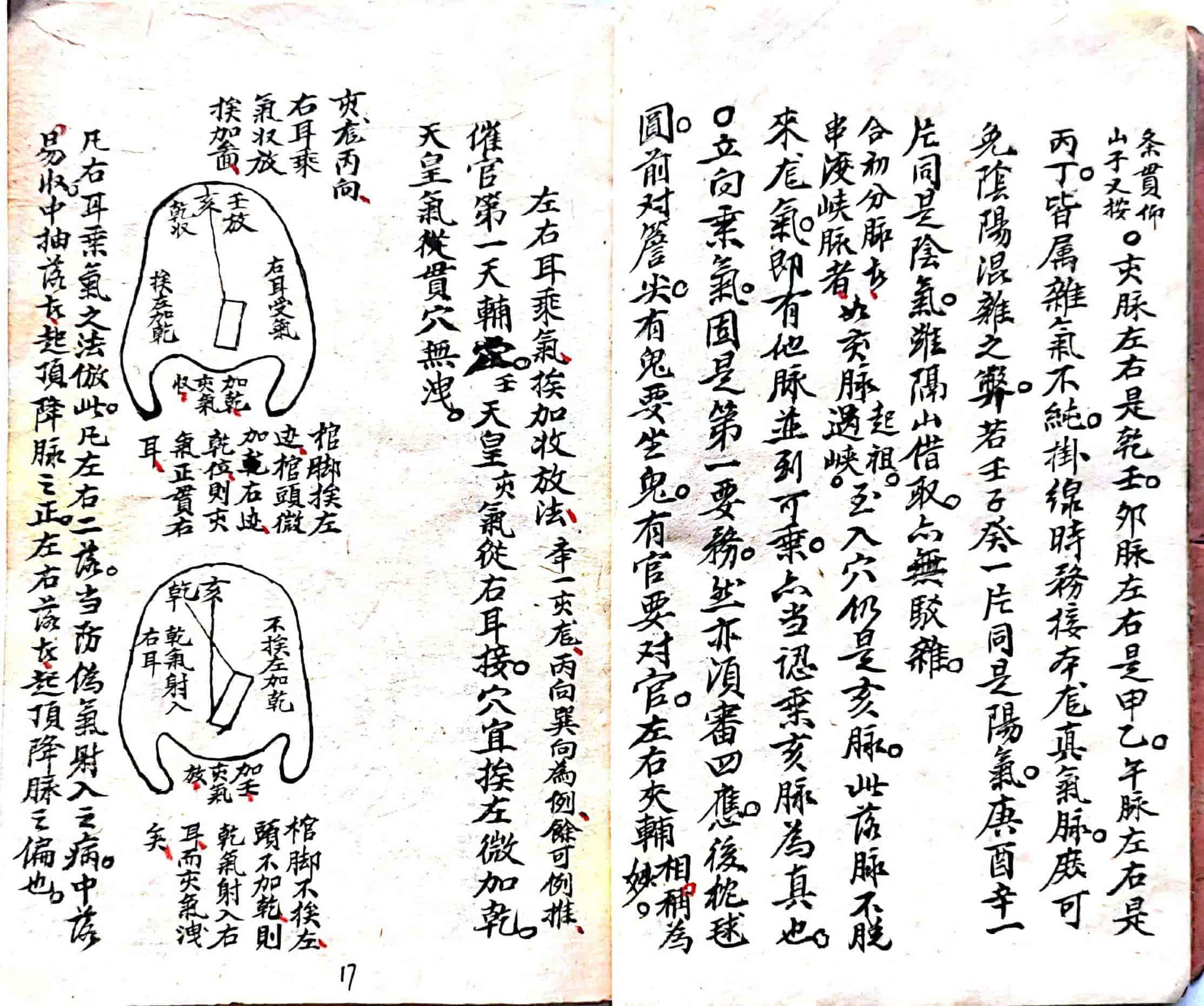夫塟乘生气,乘穴中所受之生气也,大凡有受则有乘,人脑无窍,气冲则散,散则生气不聚,而穴无结矣,惟耳腰输可以受气,耳受则肩乘,腧受则腰乘,腰受则腧亲,正来者耳受,斜来腧受,横来者腰受,龙与塟位隔一位二位者,為耳受肩乘,隔三位四位者,为腰受腧乘,脉从左来,气从右受,脉从右来,气从左受,左受者穴挨右,右受者穴挨左,若挨加不得其位,则龙落空亡,故曰母蹈空亡,气从耳入官易期,气从腰腧官应迟,耳腰乘气有多寡,正脉甚勿差毫厘。