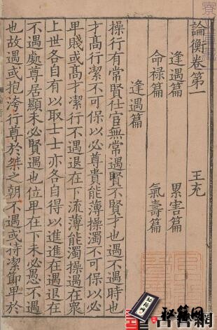 卷一:逢遇篇、累害篇、命禄篇、气寿篇