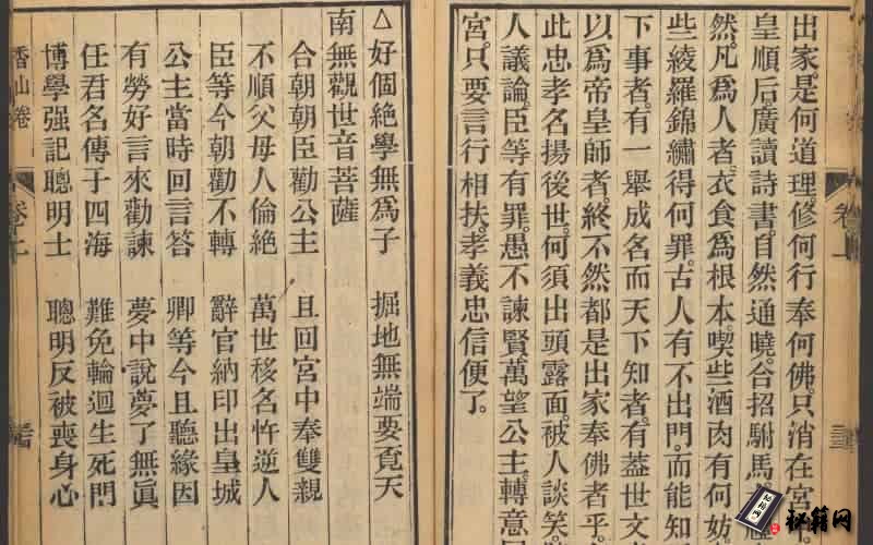 宋代以后,宣讲妙善公主显圣为观音的《香山宝卷》一再刊印,抄本也递转传抄,还出现了数十个版本。据车锡伦《中国宝卷总目》仅《香山宝卷》,前后竟有35种版本和抄本。现存的最早版本《香山宝卷》是乾隆三十八年(1773)本,为“古杭州昭庆寺大字经房”印制,卷首署有“天竺普明禅师编集、江西宝峰禅师流行、梅江智公禅师重修、太源文公法师传录”。经过多位禅师“流行”“重修”“传录”之类的加工,已非普明原本。