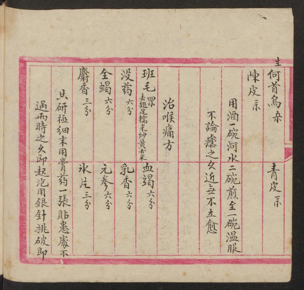 本书收录了诸多古方,包括:治疟疾仙方、治喉痛方、治癣神效方、治时疫方、治哮吼妙方、洗眼仙方、治目疾方、治折骨伤方、治疝古方、治擦牙方、治蛇咬蜂蛰、治疝气方、治鼻血方、治鱼骨鲠、治失血方、治扑打跌伤、治接骨、治咽食倒食方、治痞块方、治喉闭症、麝黄散(治牙痛喉痛)、人中散(治诸般牙痛喉痛)、解暑妙方、蛛丝迷目方、鼻疔方、小脚方、跌打损伤刀伤历时止血止痛奇方、治诸骨鲠、治癫狗咬方、治麻脚瘟慰肚方、辟疫方、治吐血神方、治痢症神效方、治疥疮方、治疯犬咬伤仙方、鼠疫神妙方、治羊毛疔方、调经种子仙方、治使耳聪方、治跌打损伤刀枪马踢伤、戒酒新法、火伤疗法、飞马取疔丹、治蟲牙方、治火牙方、神效开骨散、保生无忧散、预治小二惊风、出生小儿开口方、小儿封脐方、治小儿出生脐风秘方、治产妇胎衣不下、治痘方、白带丸方、九味健脾散、陆氏保胎神效膏、种子奇方等!
