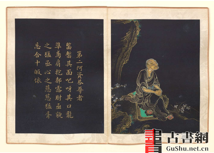 书名:十六罗汉图赞.册页.清乾隆时期内府.泥金绘本