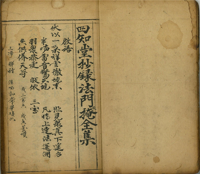 《救世景囊》,清四知堂抄录法门掩全集,内含诸多科法内秘,法门收掩全集、藏身秘法、栾机大法集要、法师急清二坛、法师再加三坛、召栾赋、就愿祈乩帖、除患灵章、咒炼灵章、心尾章、芟邪立正法、收掩沙病法旨、雷坛传科演教、书斻秘旨等等,内容珍贵,全书75个筒子页,合计150面。