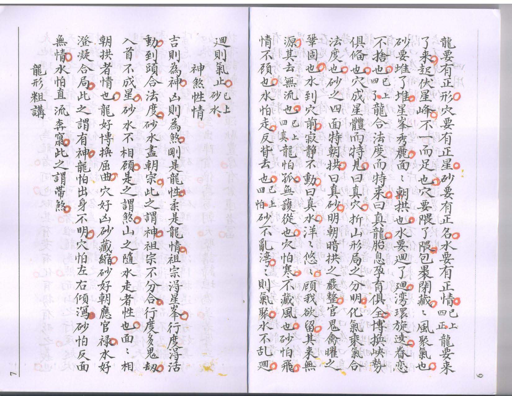 龙之有祖者,生气之原也,变化之本也,龙行开幛龙方贵,脉出穿心脉始尊,起贵尊特出群,止重端坐静然,峡是真精收饮,悼乃旺气发舒,生兮如蛇如龙,活动秀嫩,死也似鳅似鳝,直硬孤单,体分方员曲直尖,局番顺逆,势识生强顺进旺,格分正偏,水行则龙行,水合则龙合,登高峰以望其来势,堂局聚何处,权星照不焒,落脉止何处,尊星专不专,入水口以观其交牙,左山包右山,穴多结右边,右山包左山,穴多结左边,要山山起顶,面面开阳,但恐入首不成星,主星不秀嫩,然无气者上下齐阔,非脉者上下俱尖,而穴星有特秀特肥,时端特巧,是穴之法,特之一字尽之矣,故横龙贵有鬼,横案贵有官,龙之餘气在枝缠,穴之餘气在裀褥,主山之余气在鬼,朝案之餘气在官,所以山谷难寻得明堂,平阳难得者水口,若夫山本静,势求动处,水本动,妙在静中,澄聚為真,入口為口,真龙落处水聚,真穴落处水缠,有声不若无音,明朝不如暗拱,明潮有用,暗注无功,至于虾鬚之水,起毬滴簷,髙山乳穴是金鱼,平阳开口為蟹眼,若明堂平如片纸,正而不偏,其来不见源,便天门开,去不见流,便地戸闭,形气之道,略摘於斯。