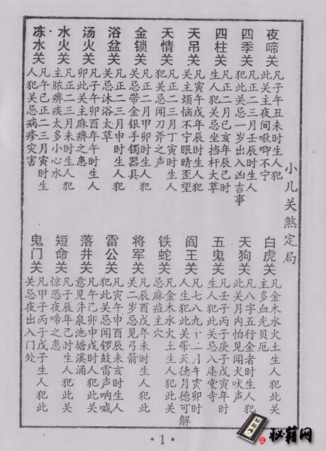 夜啼关:凡子午丑未时生人犯此关,主夜间多啾唧不宁。