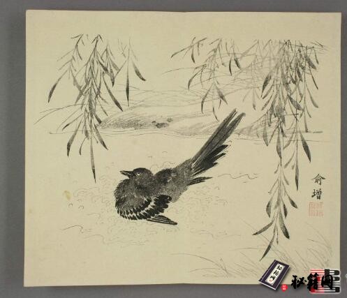 清中期日本木板摹刻中国古代字画册页,木板套色。