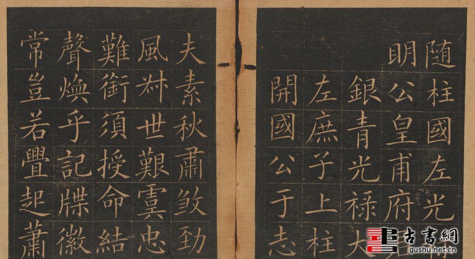 此碑现在西安。碑额篆书“隋柱国宏议明公皇甫府君碑”。此碑在明代已断为两截。其中清拓本系据北宋拓本缩小翻刻之石拓印, 字迹完好无损.封底有”同治甲戌五月上澣纪”字》皇甫府君碑.唐于志宁撰.欧阳询书.明拓原刻.清拓翻刻两本。