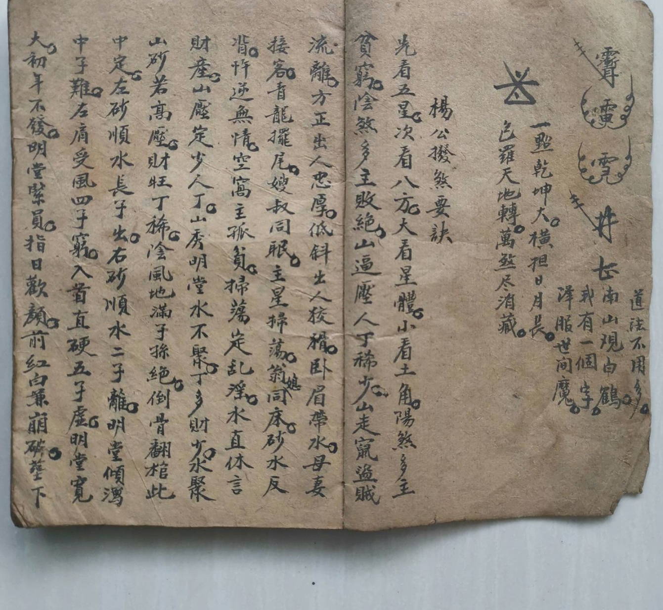 《白鹤仙人起水 杨公拔煞要诀》清代手抄本,内容有白鹤仙人起水、杨公拨煞要抉、看阳宅秘诀、何知歌、剖坟经、定水法秘传、一扇经、改坟秘诀、起山煞、龙山九星图、祭陈公文、迎谱祭祖文等等。