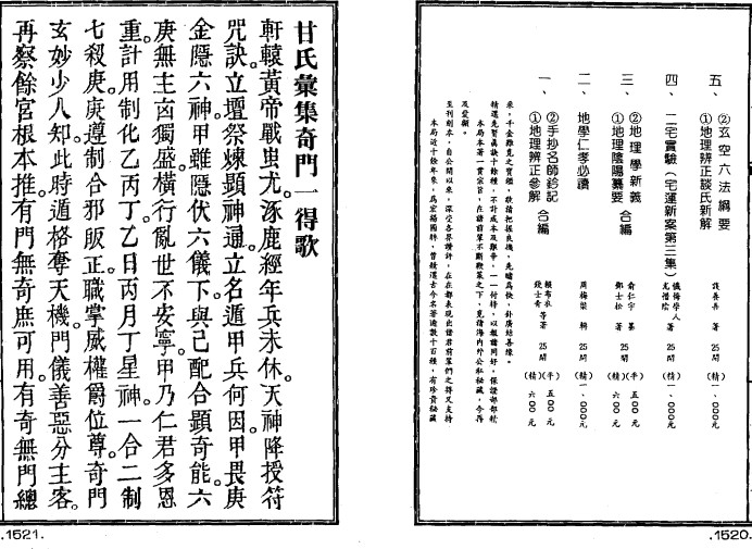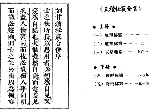 《五种秘窍全书》,甘时望著,包含地理秘窍、选择秘窍、天星秘窍、罗盘秘窍、奇门秘窍五种。被收录于子部珍本备要第321、322、323、324、325种。