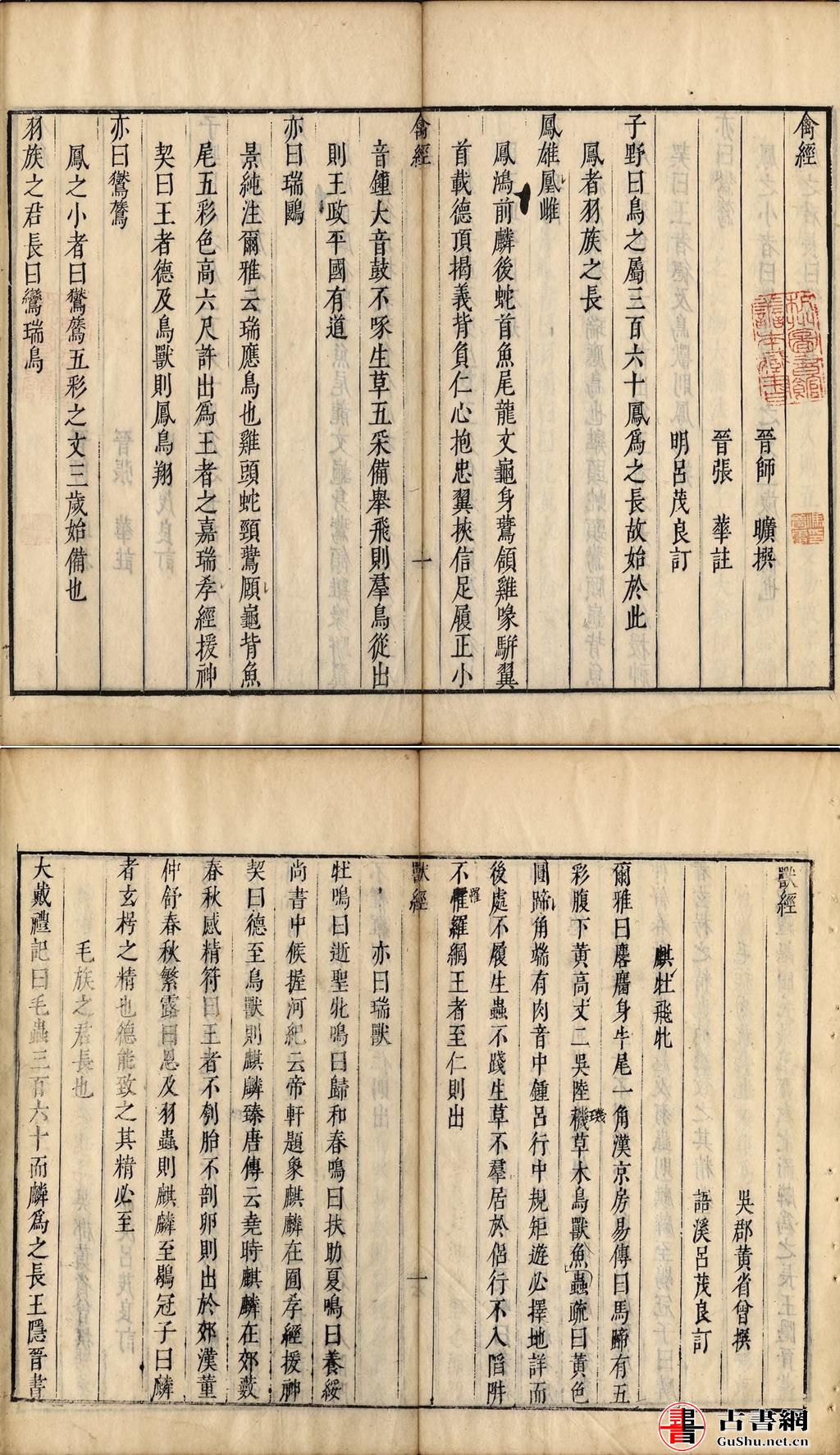 古籍.禽经. 晋. 师旷撰. 张华注. 兽经. 明. 黃省曾撰. 明天启六年吕茂良刊本丨杭州图书馆藏