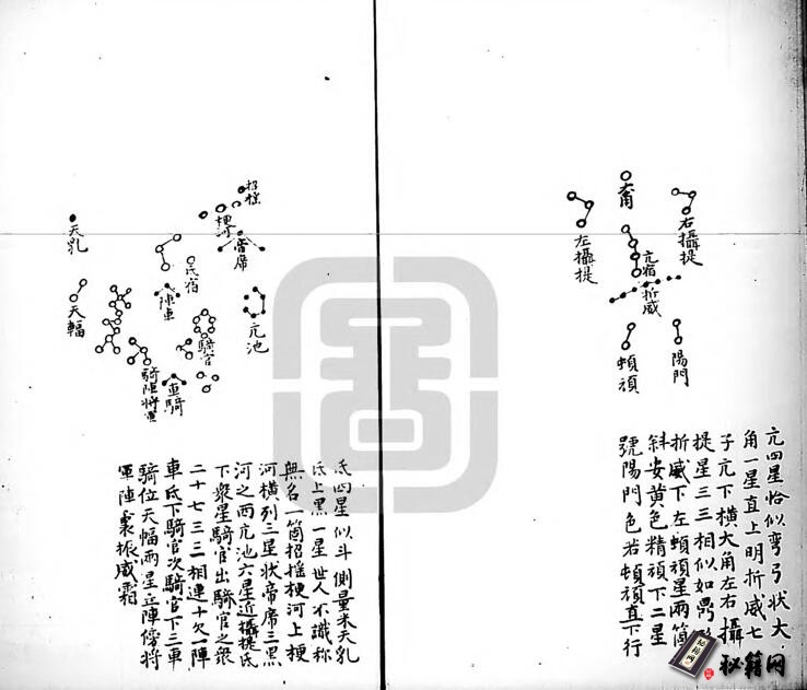 我国古代有一种说法,认为天是圆的,地是方的。《吕氏春秋·察意》中说:“大圜在上,大矩在下。”这种“天圆地方”说反映了当时中国人对天和地的一种理解。中国秦汉以前占星术的源流,《史记·天官书》记载说:“昔之传天数者:高辛之前,重、黎;于唐、虞,羲、和;有夏,昆吾;殷商,巫咸;周室,史佚、苌弘;于宋,子韦;郑则裨灶;在齐,甘公;楚,唐(目末);赵,尹皋;魏,石申。”但是,这些古代天文学家的占星著述都已失传,后世虽有《甘石星经》等流传,但已是唐宋人著作,并非战国时代的原著。中国现存的古代占星书主要的有唐代李淳风所著《乙巳占》、瞿昙悉达所撰《开元占经》、北宋王安礼重修的《灵台秘苑》以及明代的《观象玩占》等。