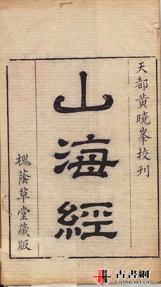 此写刻本为清乾隆时期黄晟槐荫草堂刊本。内容含:山海经序(郭璞撰)、山海经后序(杨慎撰)、上山海经奏(刘秀撰)及以上十八卷。此本与群玉书堂刊本基本一致。