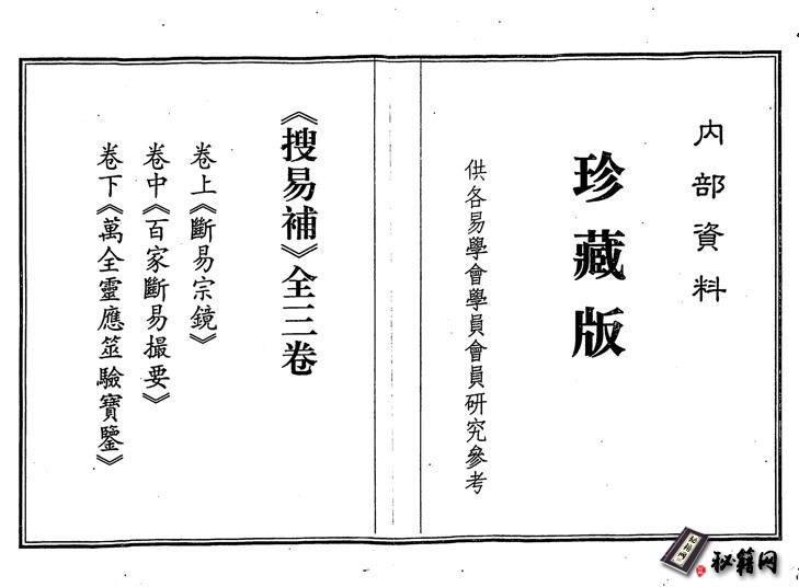 卜 筮 之 道 , 全 在 變 通。 或 主 于 大 象 之 凶吉,或重于世 用之旺衰,或取决六親而論,或尊崇六神以推;識陰陽 動 静 而 知 變 化 , 明 五 行 生 克 以 論 否 泰。 歷 來 聖 賢 , 探 幽 索 隱,闡奥發揮,各有特點,每有精論,譬若占天時晴雨為 例 : 《 斷 易 參 補 》 以 六 爻 斷; 《 海 底 眼 》 以 五 行 斷; 東 方 朔以天午斷;《磨鏡藥》以地支斷;葉道元以六親斷; 《 易 心 訣 》 以 六 神 斷; 《 摘 星 集 》 以 世 應 斷; 劉 伯 温以陰 陽斷 ,張星元以八卦斷。可謂仁者見之謂之仁, 智者見 之 謂 之 智。 雖 絶 論 紛 紜 , 然 理 總 歸 一 。能透悟生克制化之 玄妙,善于通變推類,雖易道幽奥,而無不靈應如響。例 如:趙輔和曾見筮者為某占父病,卜得泰卦,筮者雲: 『甚吉,疾當愈』。是人喜去。后趙輔和謂筮者曰:『泰卦 乾下坤上,然則父入土矣!豈得言吉』。后果以凶聞。此非 通 變 之 驗 乎 ? 又 如占病或占訟,卜得解卦,可許吉兆,倘問婚事,則主乖忤。又如《靈應真經 雜見應》 外應斷 雲: 『… … 破竹剖笋,勢必順暢… … 』倘占征戰或出行’ 恰逢此象者固然吉推。若占婚姻或占合伙遇之者,必主 不利。凡此類例,數不勝舉。 余撮引百家之訣旨,搜羅萬類之占例,其的是供 后學者融會參悟,引伸聯想,而善蓮變,以致不拘泥于 某法某論而難以登堂入室也。