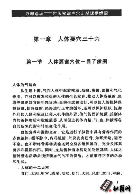 武林前辈高手祖传绝秘功法《夺命追魂—世传秘谱点穴击杀辣手绝招》