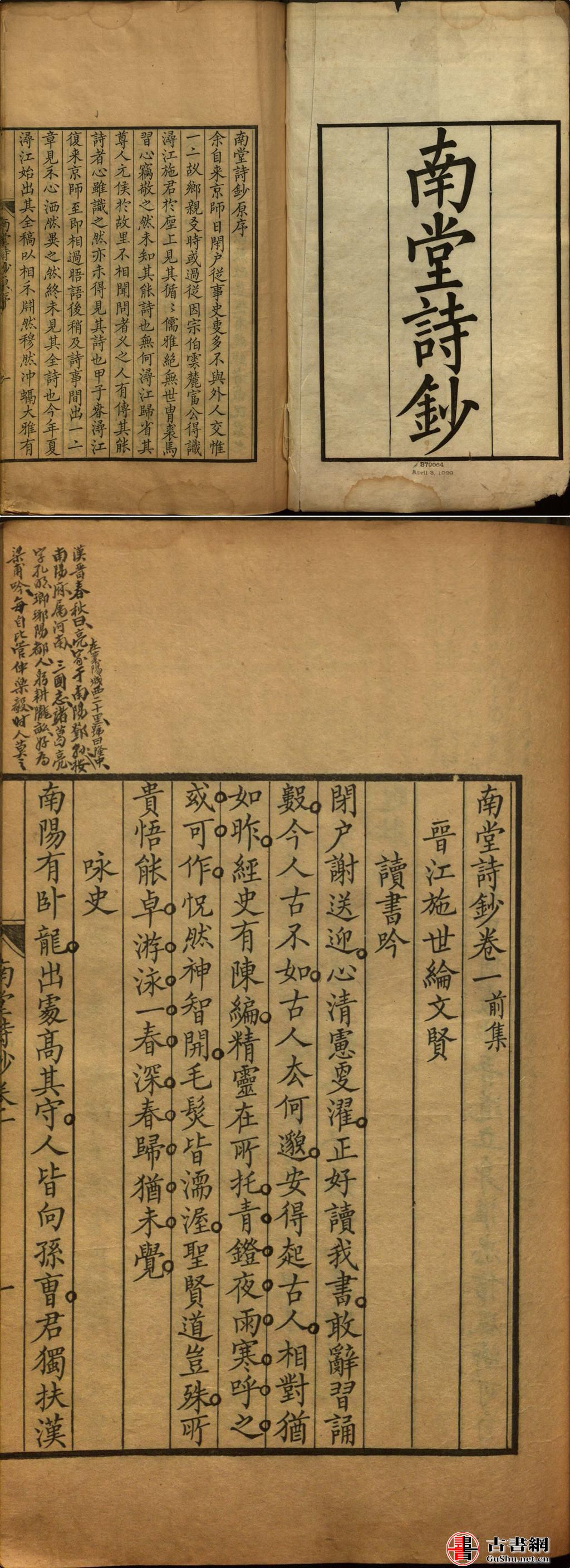 古籍.南堂诗钞. 十二卷. 南堂词赋. 一卷. 清雍正四年施廷翰刊本